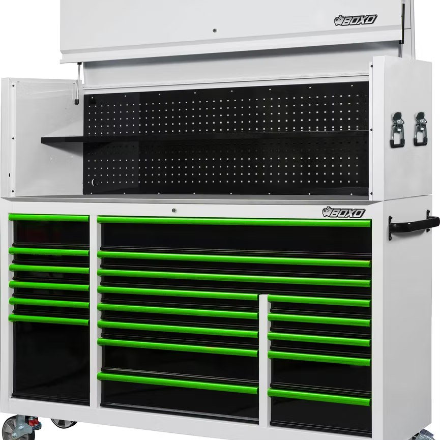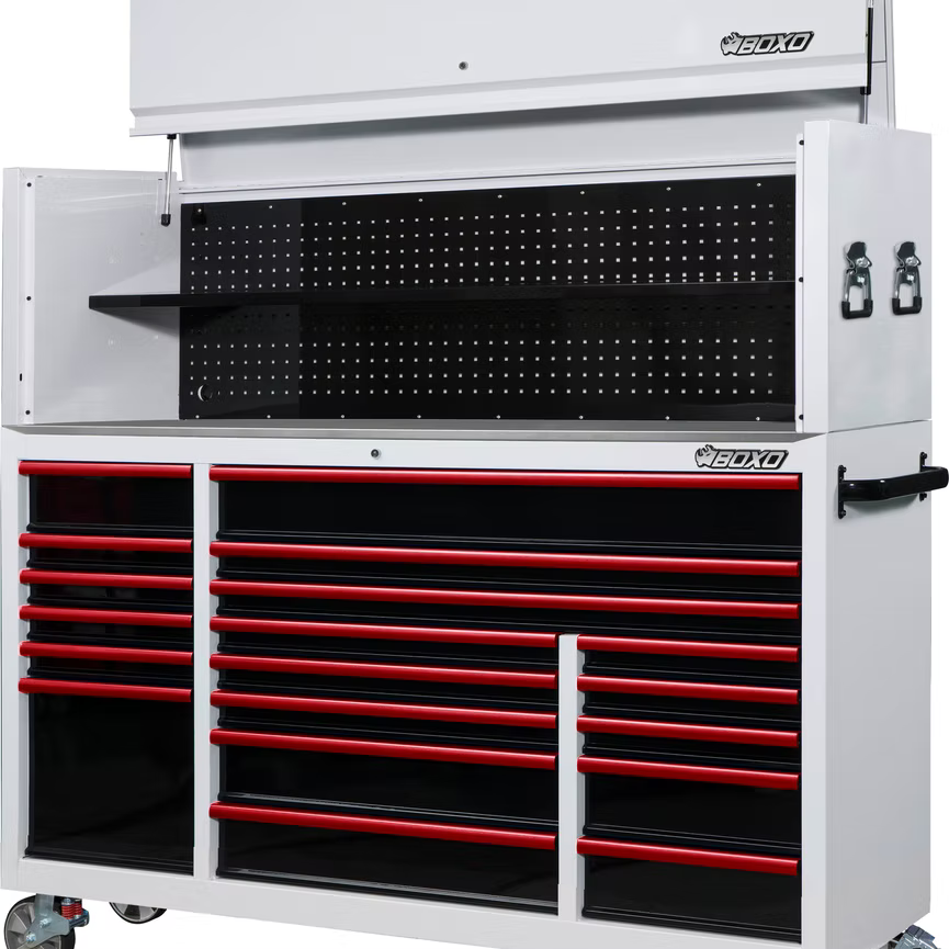 The BOXO 72" Roll Cabinet & Power Hutch is a premium, workshop-grade storage solution built for professionals who demand durability, security, and integrated power. With 19 precision-running drawers, an XL lockable top storage area, and a powered hutch, this stack is ideal for high-value tools, power tools, and organised tool control systems.