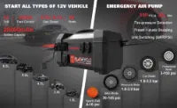 Additional features include a 20,000mAh power bank, 500-lumen LED flashlight, and 60W two-way fast charging that recharges the unit in just 1.6 hours—making it an essential all-in-one solution for roadside emergencies and everyday convenience.