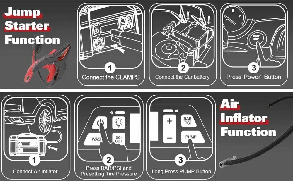 Powerful 2500A Jump Starter – Suitable for petrol engines up to 8.5L and diesel engines up to 6.5L.